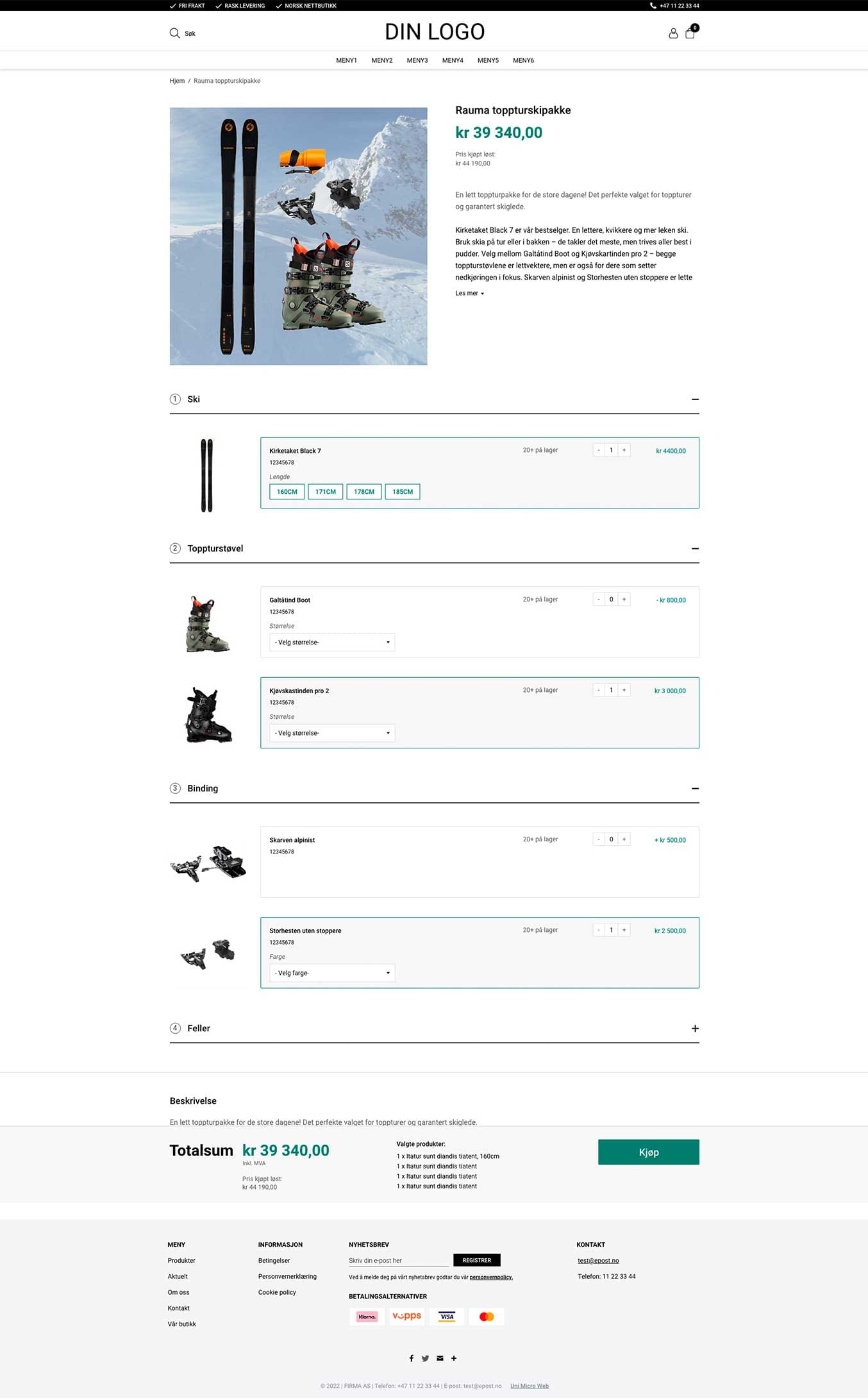 Er du interessert i pakkeprodukt, kontakt oss ved å sende en e-post til salg@unimicroweb.no.