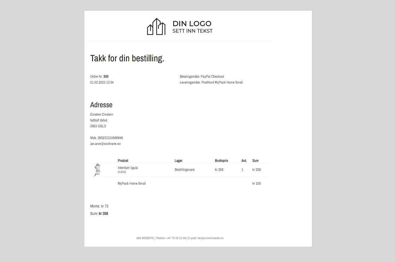 Ordrebekreftelser går automatisk ut til nettkunder, med kopi til nettbutikk-eier ved gjennomføring av kjøp i nettbutikken.