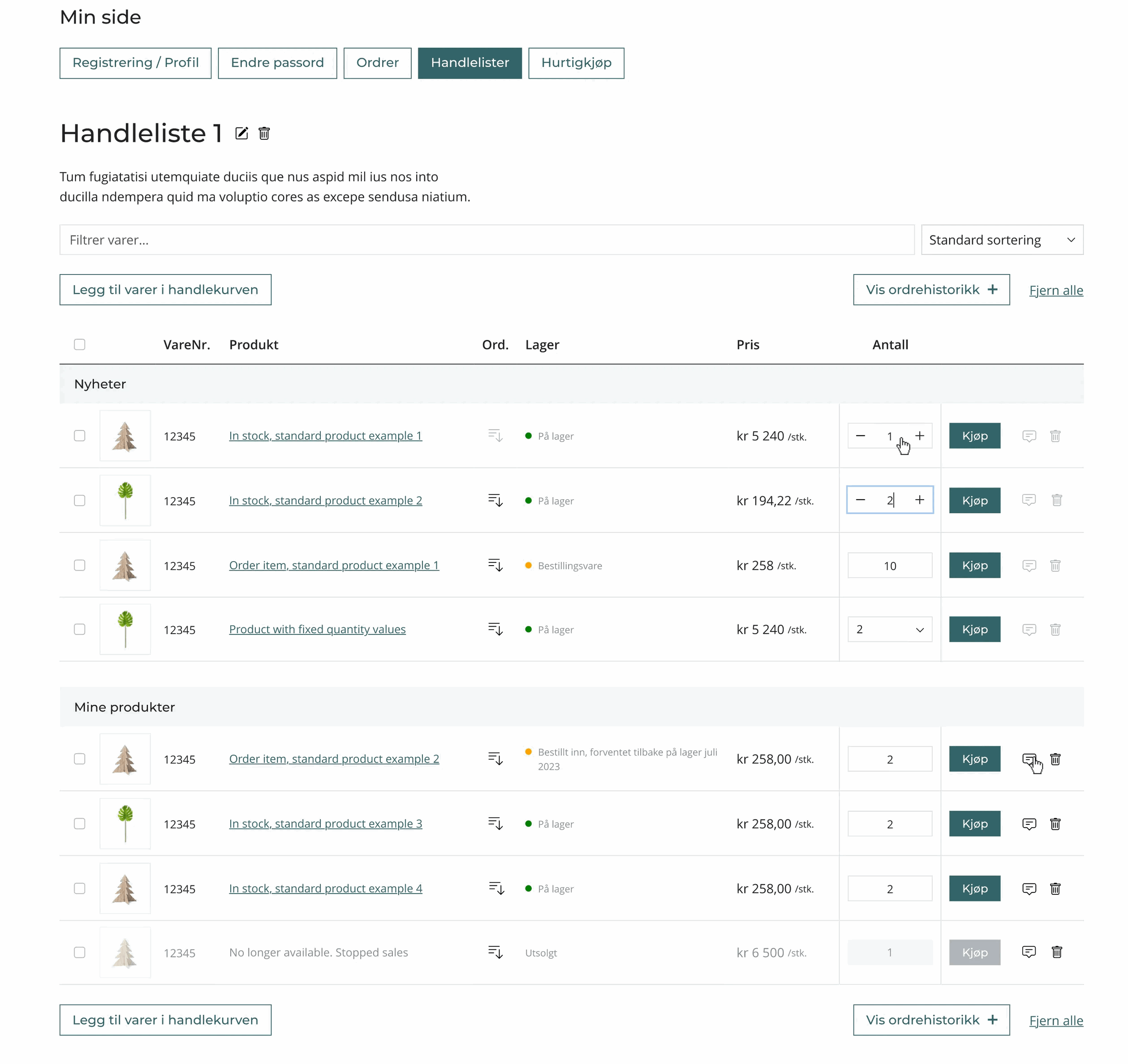 Gjør gjentatte kjøp enklere for B2B-kundene ved å tilby handlelister - dette gjør at man sparer tid og gir en smidig kjøpsopplevelse.