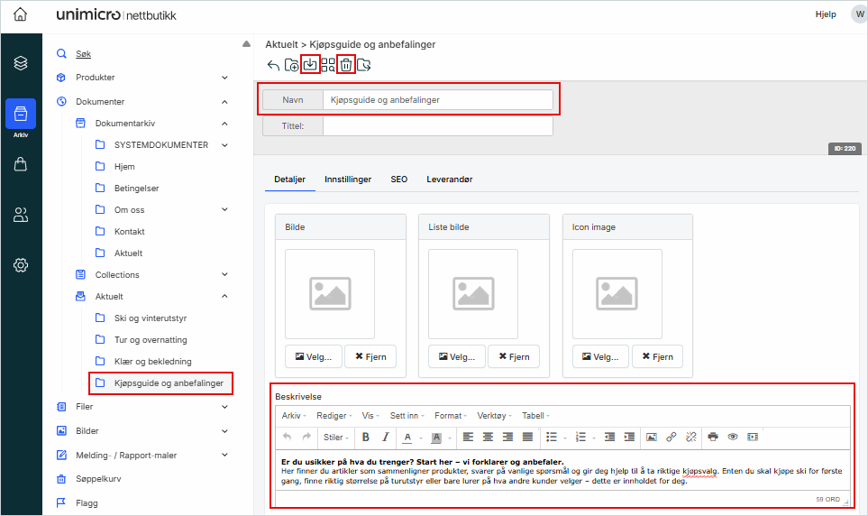 3. Endre navn, legg til beskrivelse eller slette aktuelt-kategorien