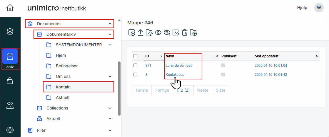 1. Stå på Dokumenter → Dokumentarkiv → Kontakt