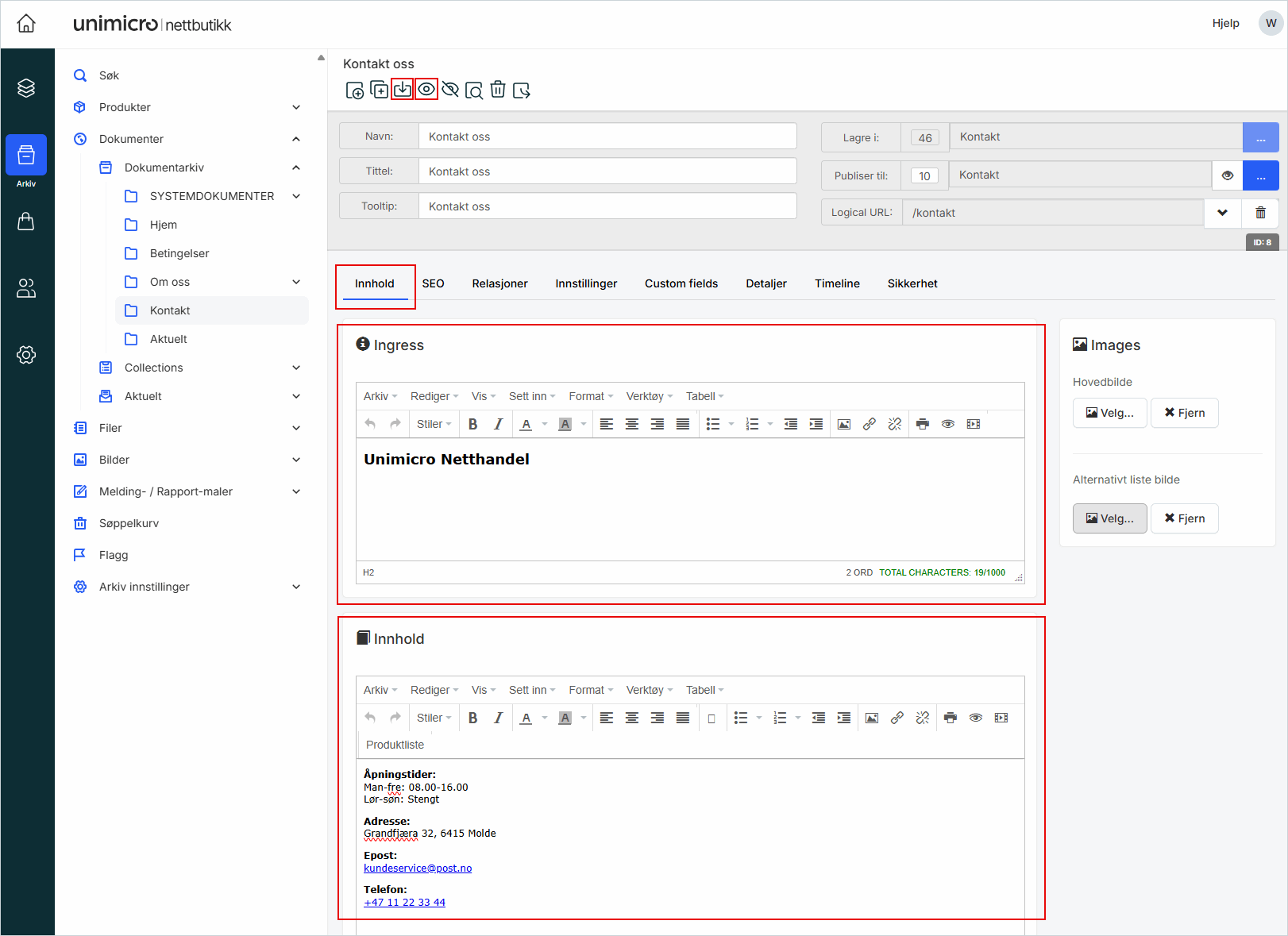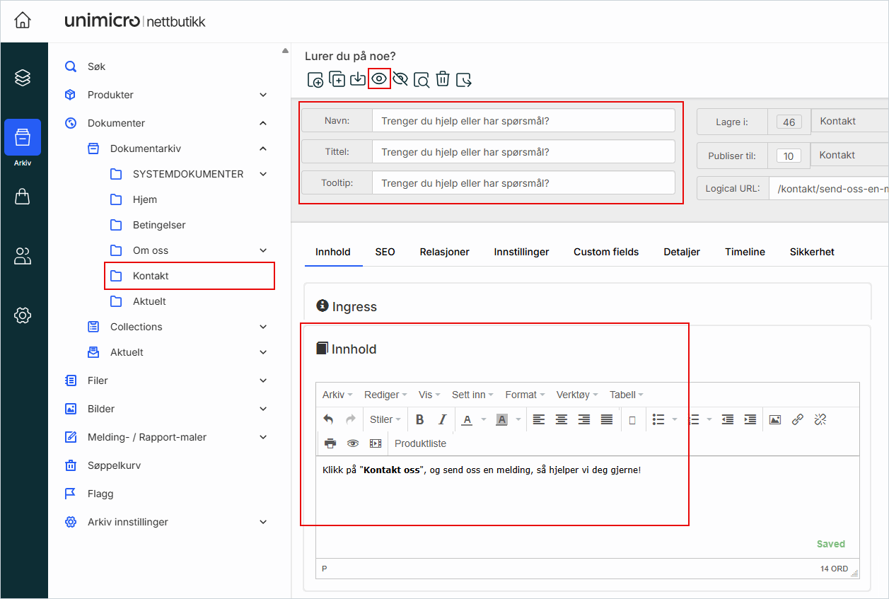 1. Oppdatere "Kontakt oss"