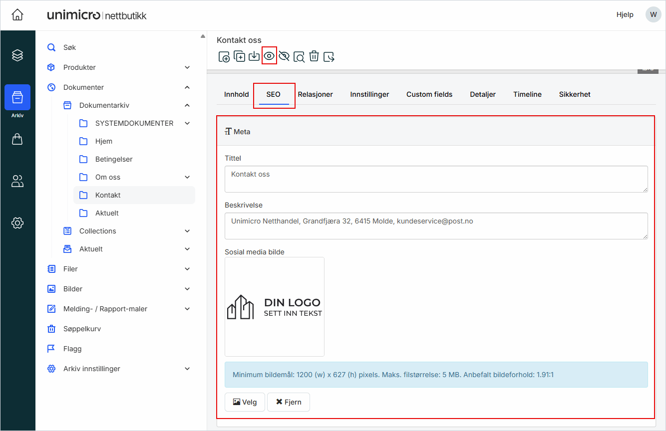 4. Legg til Sosial media bilde (vises når siden deles i sosiale medier)