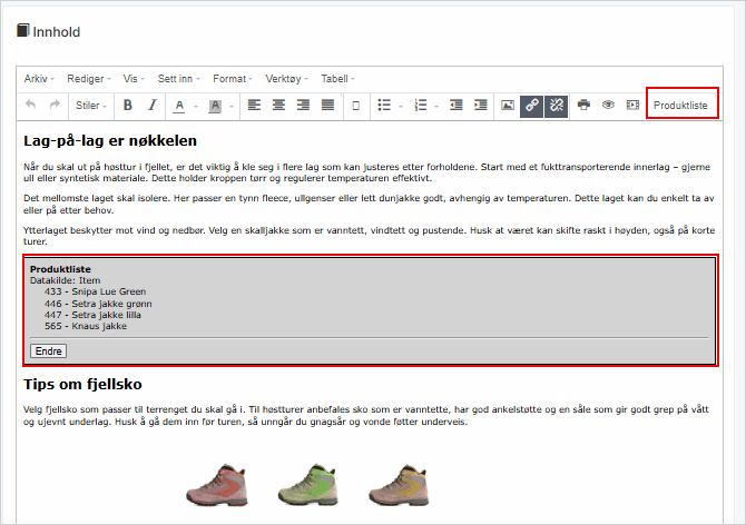 4. Legg til produkter i teksten med produktliste-ikonet. Da kan kundene handle direkte fra artikkelen.