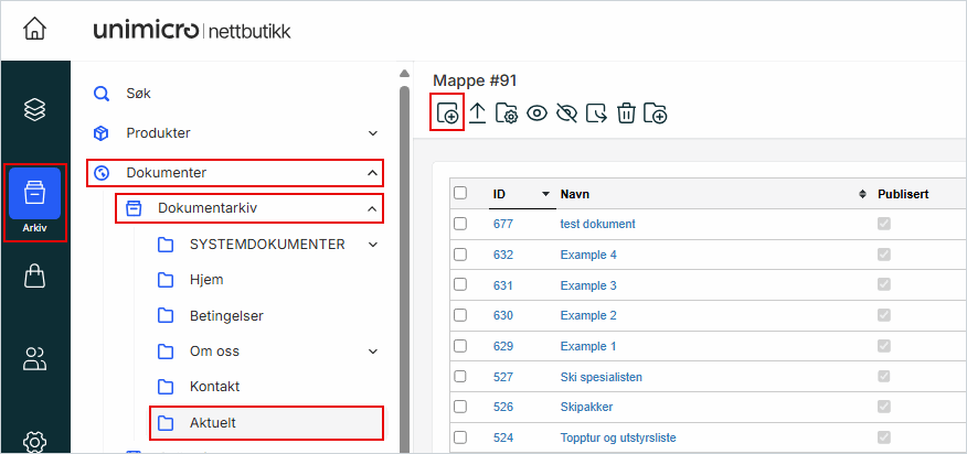 2. Klikk på Dokumenter → Aktuelt eller Dokumenter → Dokumentarkiv → Aktuelt