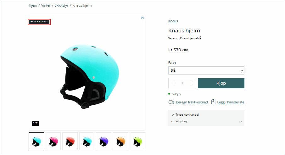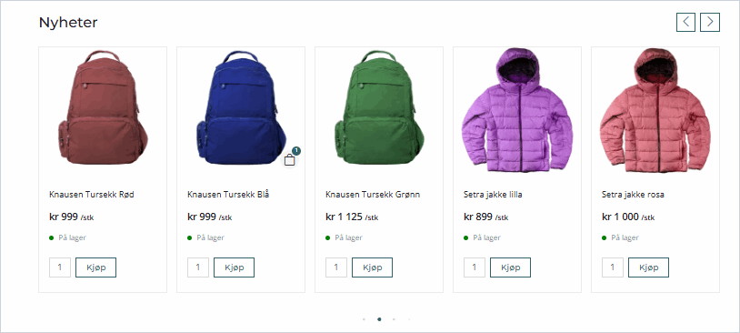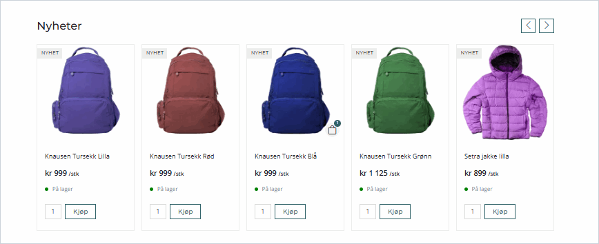 Last inn siden på nytt i nettbutikken og du vil se at listen Nyheter har fått flagget NYHET