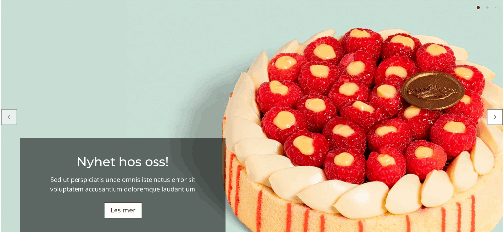 En visuell seksjon som lar deg vise flere kampanjer etter hverandre. Hvert bilde kan ha sin egen tekst og lenke (Call to Action), slik at du kan presentere flere tilbud eller viktige budskap på en effektiv måte. Du kan Oppdatere kampanjebilde-slider ved å gå til Bilder → Bildearkiv.