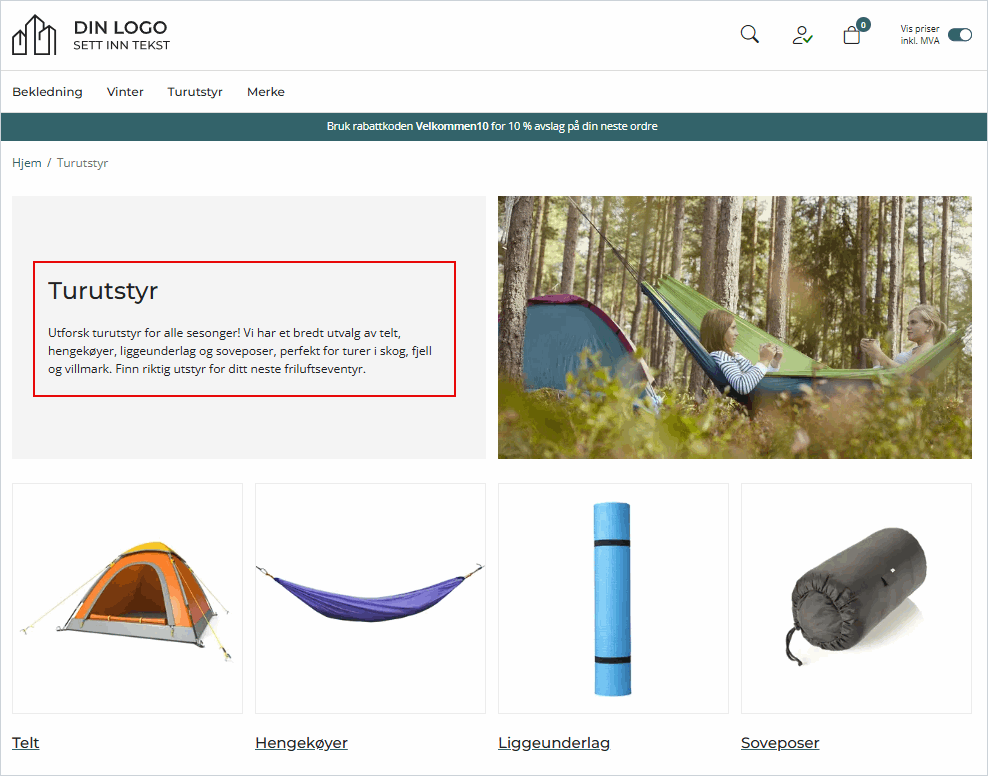Beskrivelsen vises på landingssiden og hjelper kundene med å forstå hva kategorien inneholder