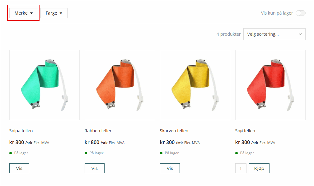 Filtrering etter merke: Kunden kan også filtrere produkter på merkenavn direkte fra produktlistene.