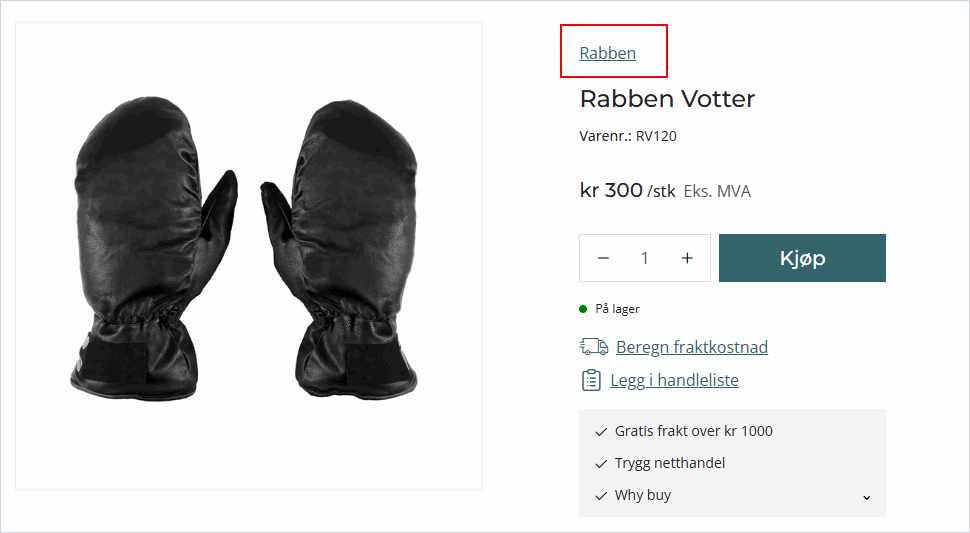 Merkenavn på produktvisning: Ved klikk på merkenavnet på et produkt, åpnes en landingsside med alle produkter fra dette merke.