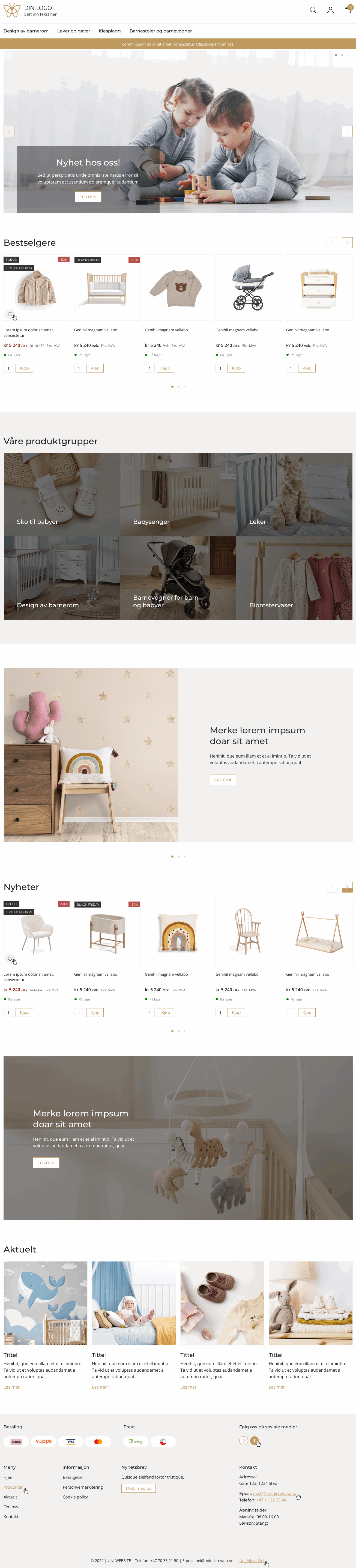 - Produktlister – viser bestselgere, tilbud eller nyheter