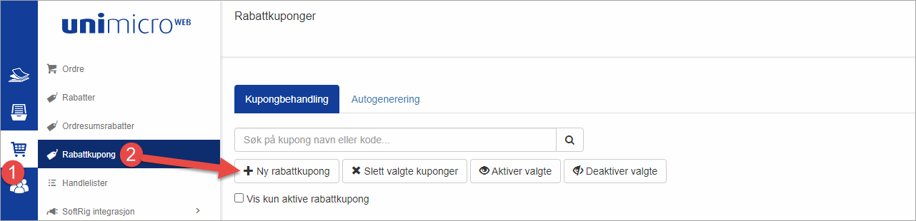 For å kunne lage en rabattkode må du ha laget en rabattkupong først.