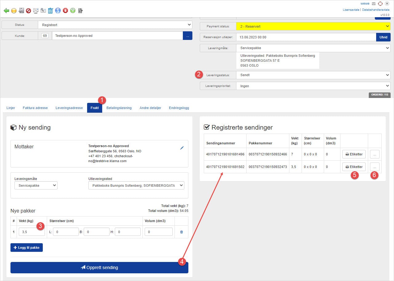 2. Webordren er tidligere blitt sendt og har derfor status "Sendt"