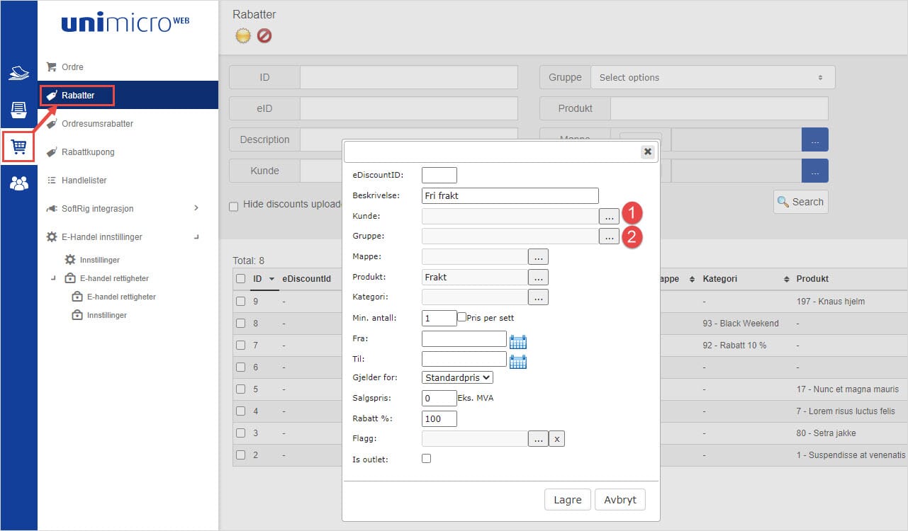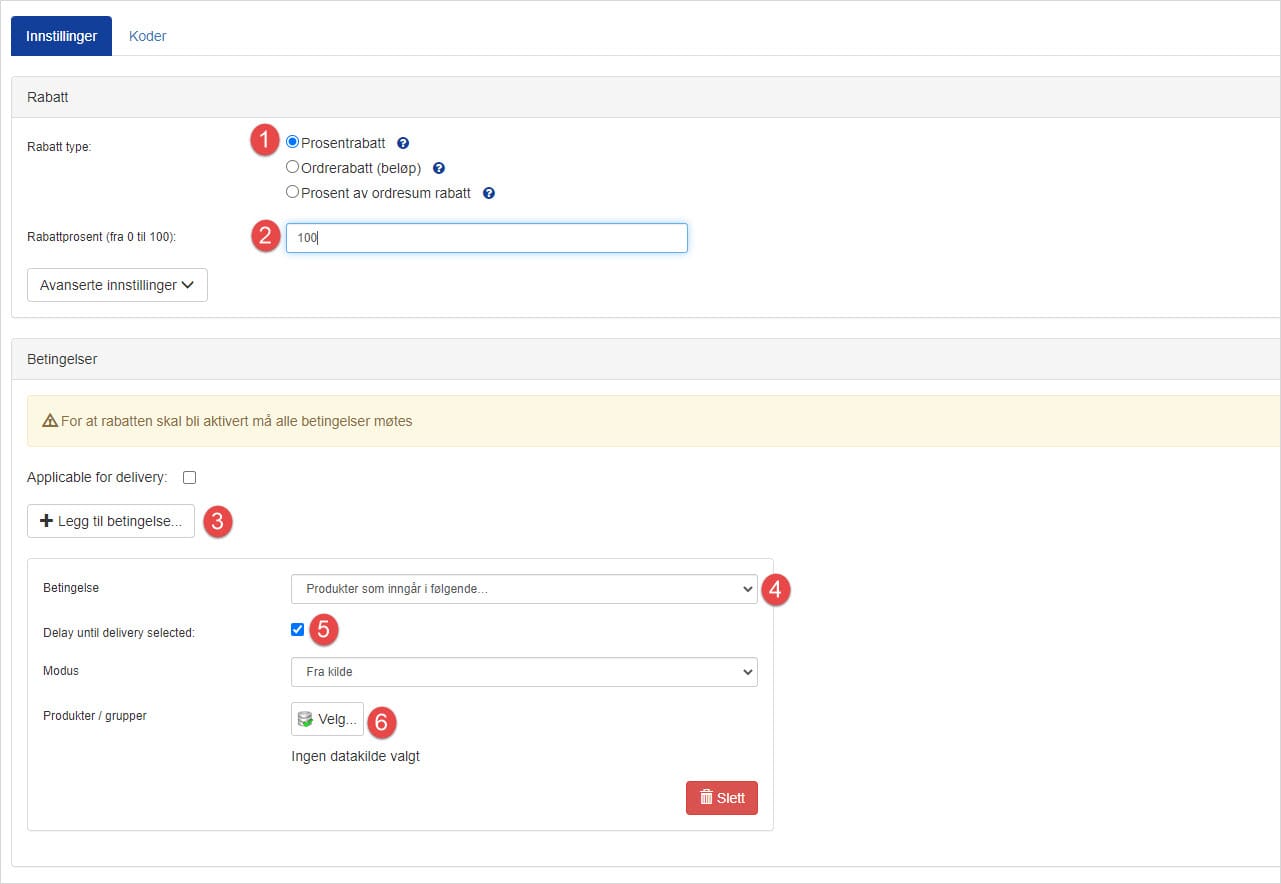 - Sett rabattprosent til 100