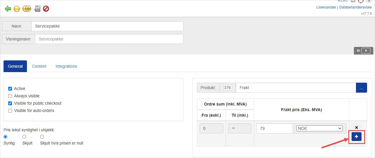Eksempelet under forutsetter at du har en eller flere fraktvarer i nettbutikken og at disse ligger samlet i en varegruppe eller kategori.