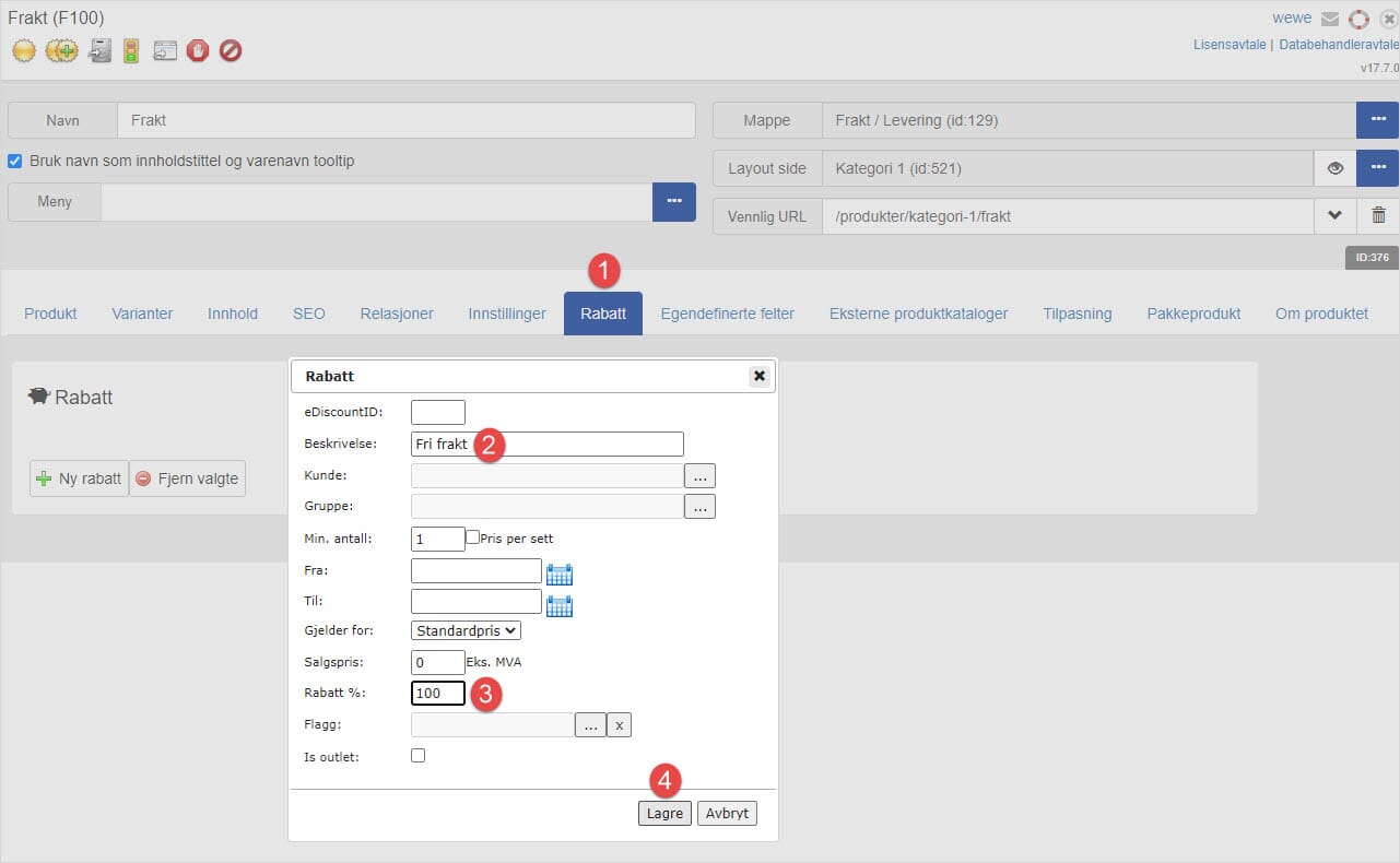 - Sett prosentrabatten til 100