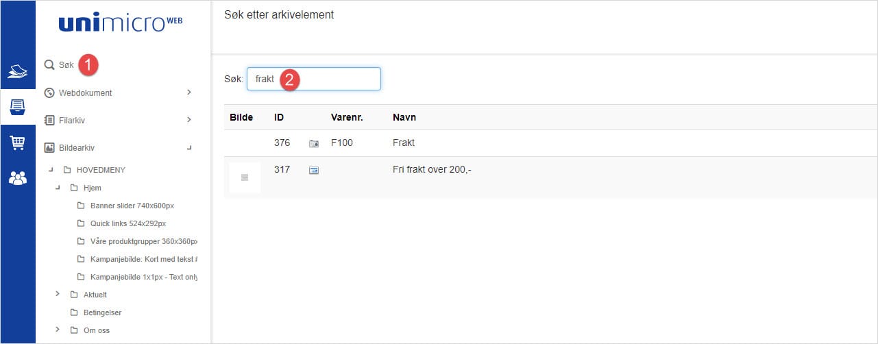 1 og 2. Søk opp fraktvaren