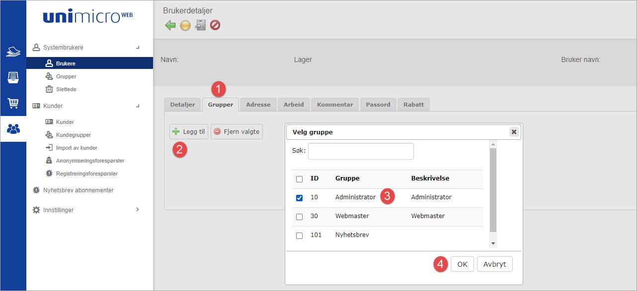 3. Velg gruppen Administrator