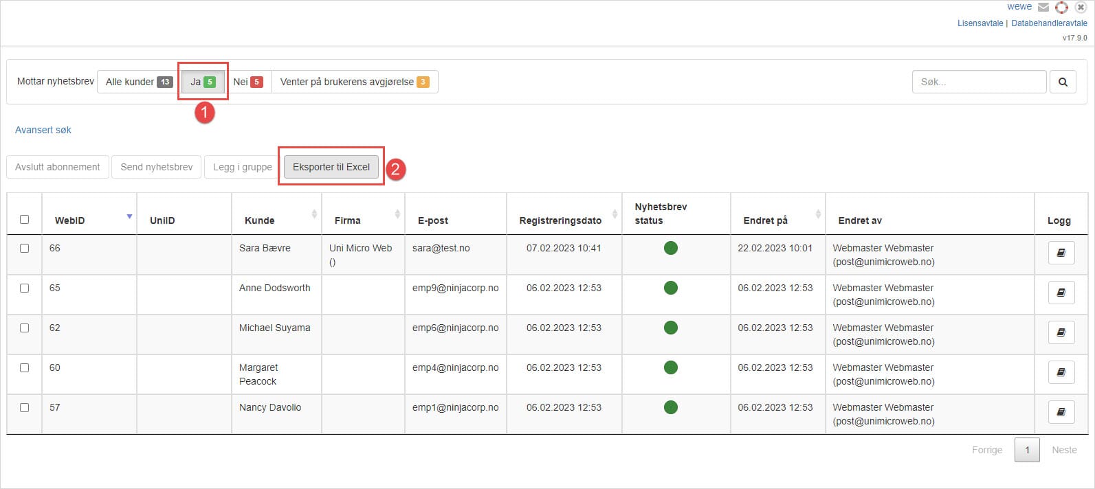 Eksporter nyhetsbrevmottakere til Excel
