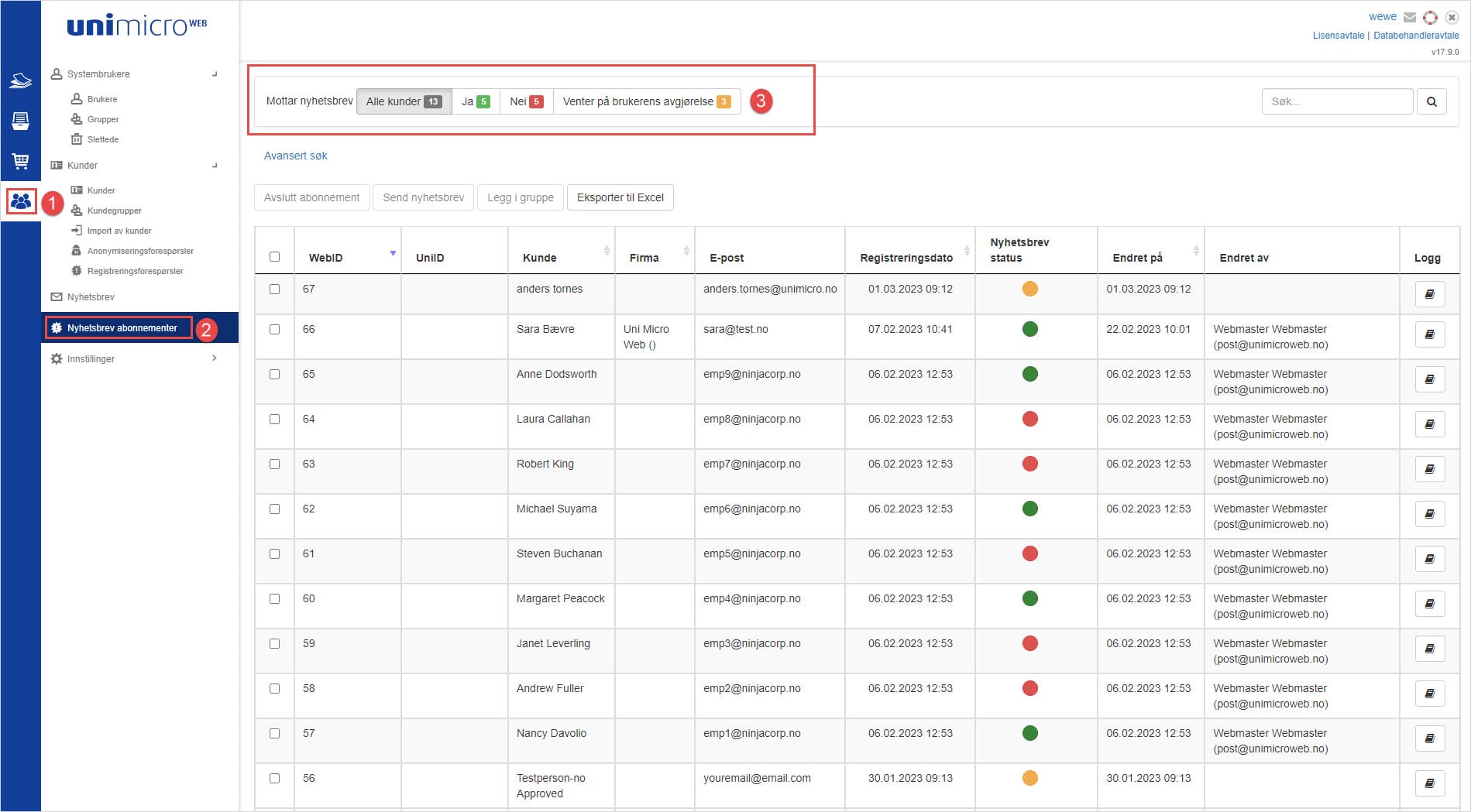 Oversikt over nyhetsbrevmottakere